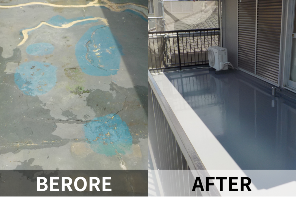 外壁には経年による色あせや細かなひび割れが見られ、ベランダ床面も防水層の劣化が進んでいる状態でした。まずは現地調査を行い、劣化箇所や今後のリスクについて分かりやすくご説明。ご納得いただいたうえで最適な施工方法をご提案いたしました。